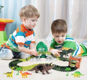 Do you want to have a simple and beautiful family time with your children in your spare time? select this ultra-fun dinosaur race track for 3 years and above boys and girls it is super-easy to assemble, Spending a small amount of time to satisfy your child’s desire for racing toys and satisfying children’s desire for dinosaur toys.